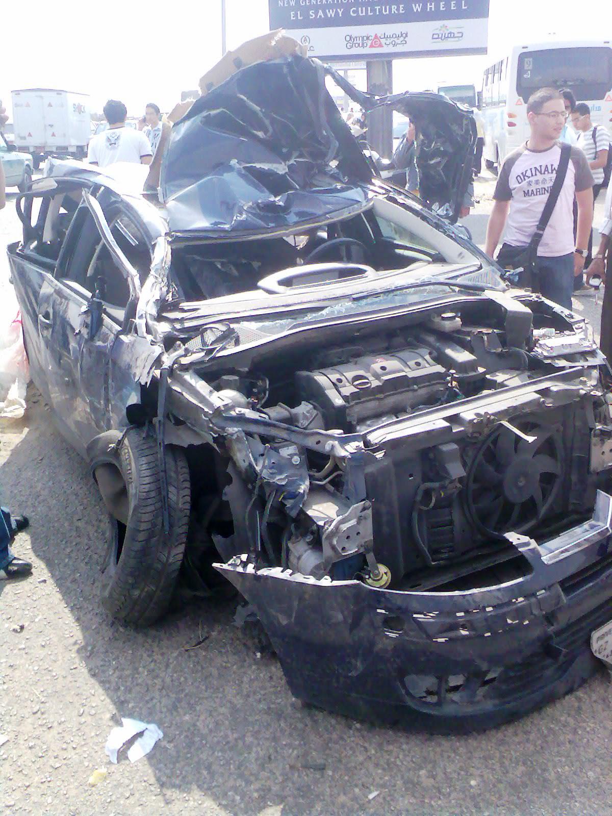 Accident_004Citroen c4, 1 student died in this car crash in Egypt, on the Cairo-Ismailia road, Misr International University