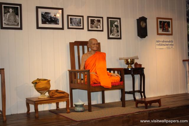 รูปปั้นหุ่นขี้ผึ้งครูบาอาจารย์ด้านในบูรพาจารย์เจดีย์