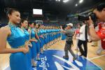 Chinese entertainers photoed with Fu Niu Lele during the closing ceremony of the 2008 Beij