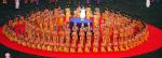 Chinese entertainers photoed with Fu Niu Lele during the closing ceremony of the 2008 Beijing Paralympic Games at the National Stadium on September 17, 2008 in Beijing, China.