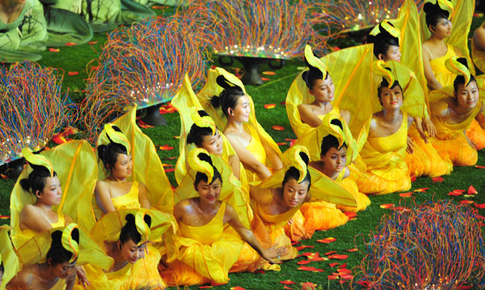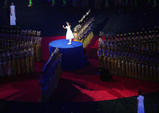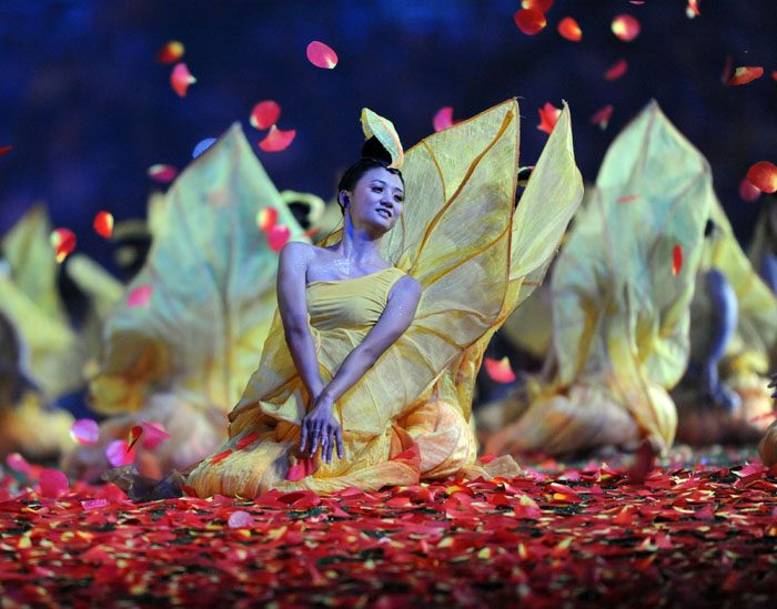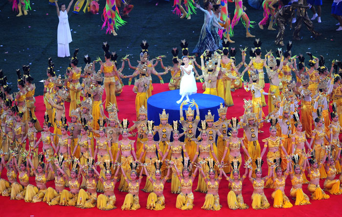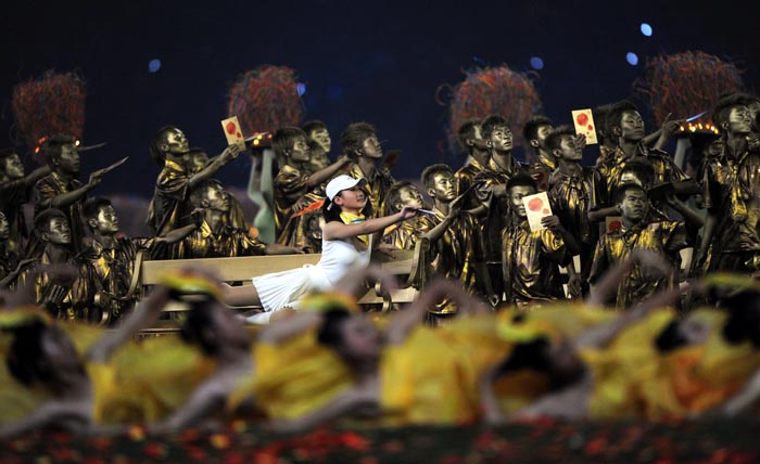 Chinese entertainers perform during the closing ceremony of the 2008 Beijing Paralympic Games at the National Stadium on September 17, 2008 in Bei