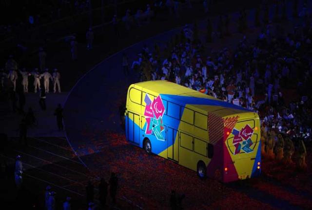 paralympics136รถบัส 2 ชั้น สัญลักษณ์ของกรุงลอนดอน แล่นเข้ามาในสนาม