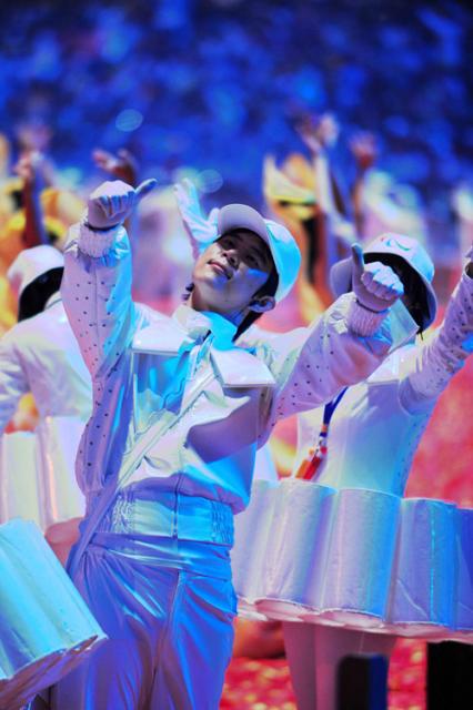 Artists perform at the Closing Ceremony of Beijing 2008 Paralympic Games in the National Stadium, also known as the Bird's Nest, Beijing, on September 17, 2008.