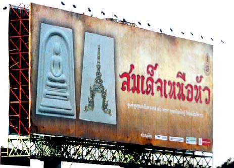 ยังชวนเชื่อ : ป้ายโฆษณาพระสมเด็จเหนือหัว 5 สี ยังคงติดอยู่ริมถนน หลังสำนักพระราชวังออกมาชี้แจงว่าไม่มีส่วนเกี่ยวข้องในการจัดสร้าง