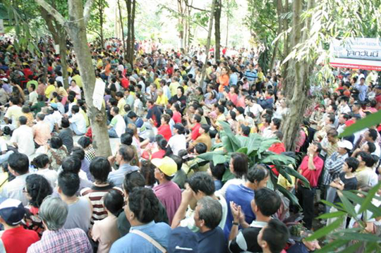 ก่อนที่นายสมัครจะเดินทางมาถึงมีประชาชนให้ความสนใจจำนวนมากประมาณ 1,500 คน จนเต็มลานธรรม