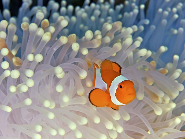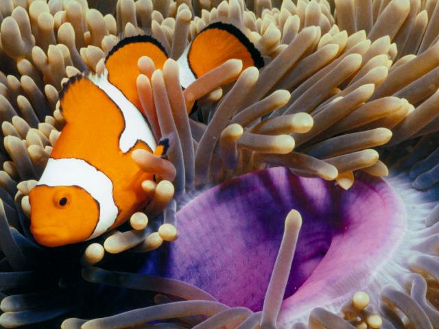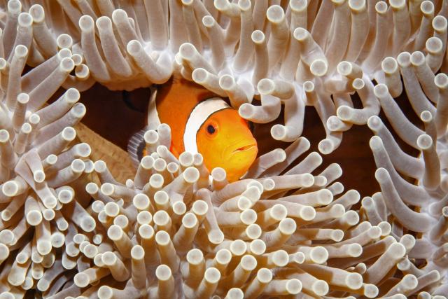 ocean-life-814A Clown Anemonefish sheltering among the tentacles of its sea anemone.