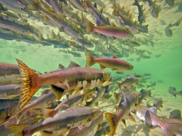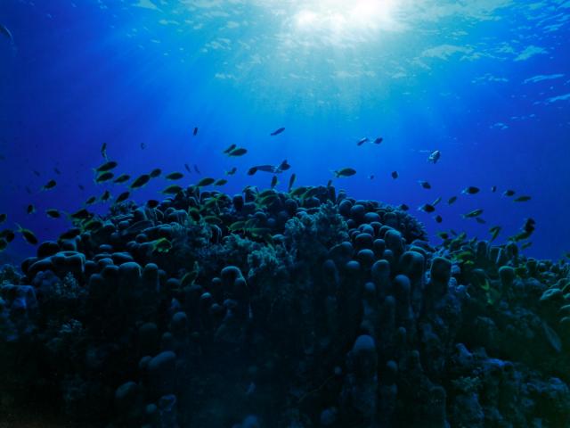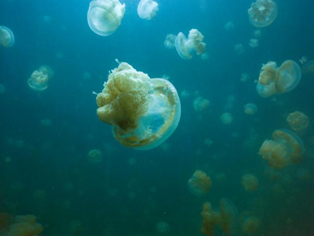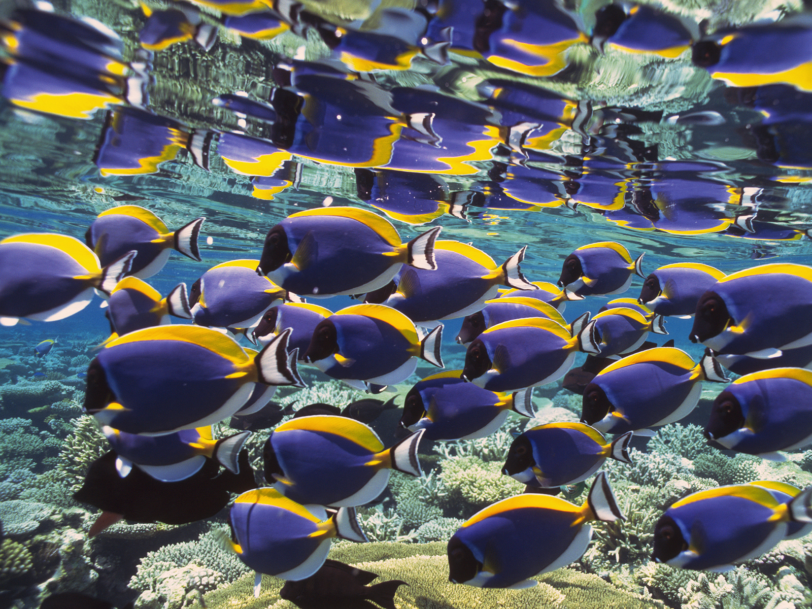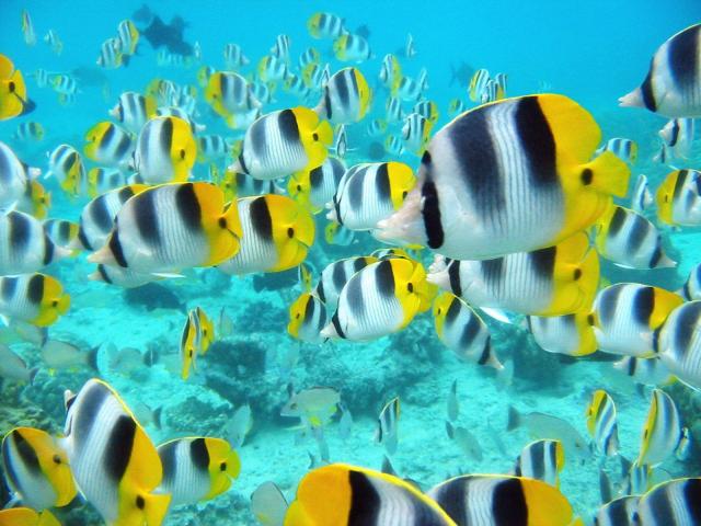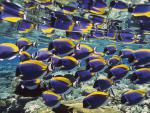 ocean-life-804Damselfish swim in shallow water in Palau's inner lagoon. Palau is known for its beautiful rock islands, prolific marine life, and world class scuba diving and snorkeling.