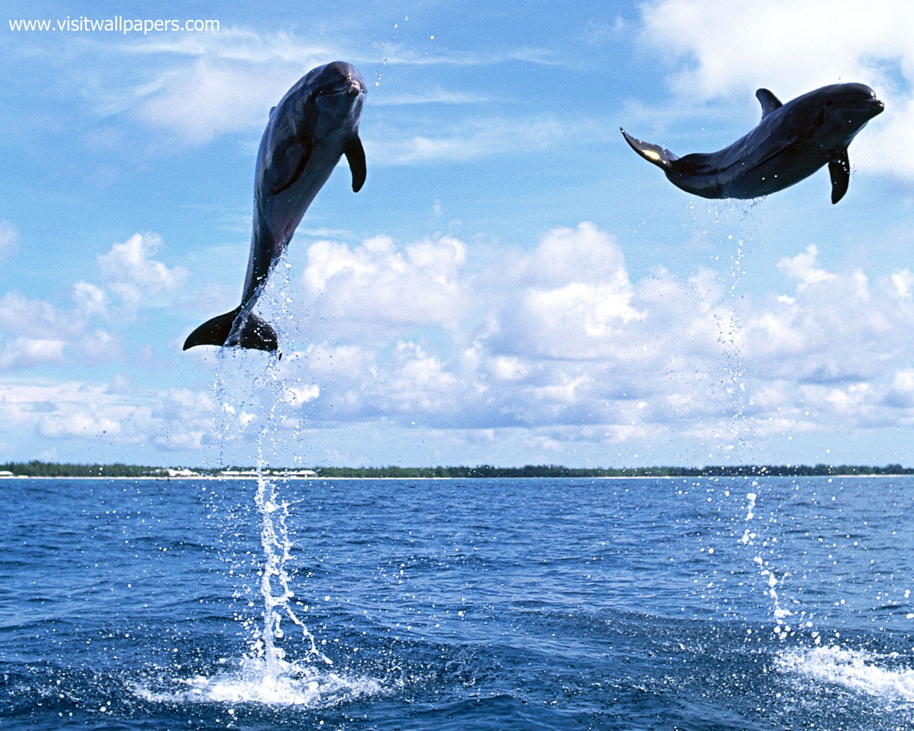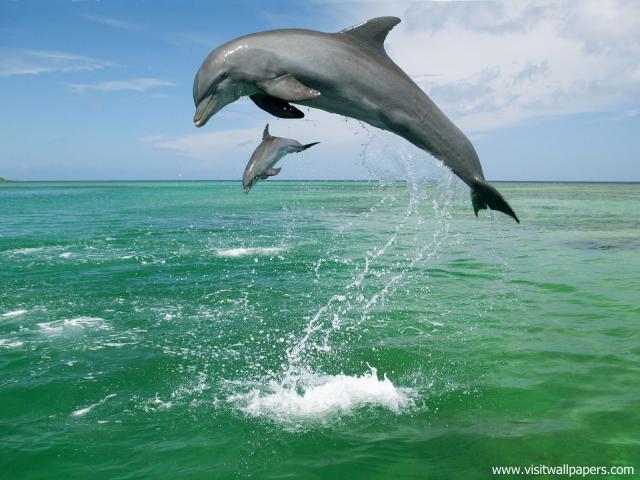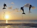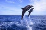 ocean-life-826Two dolphins jumping out of the water at sunrise, creating massive vortex, huge splashes, and ocean spray, the other dolphins swim on the ocean surface at lovina beach, bali island, indonesia.