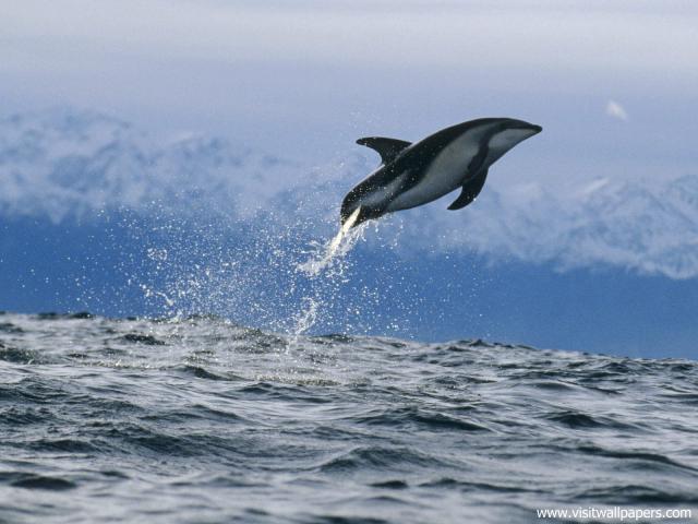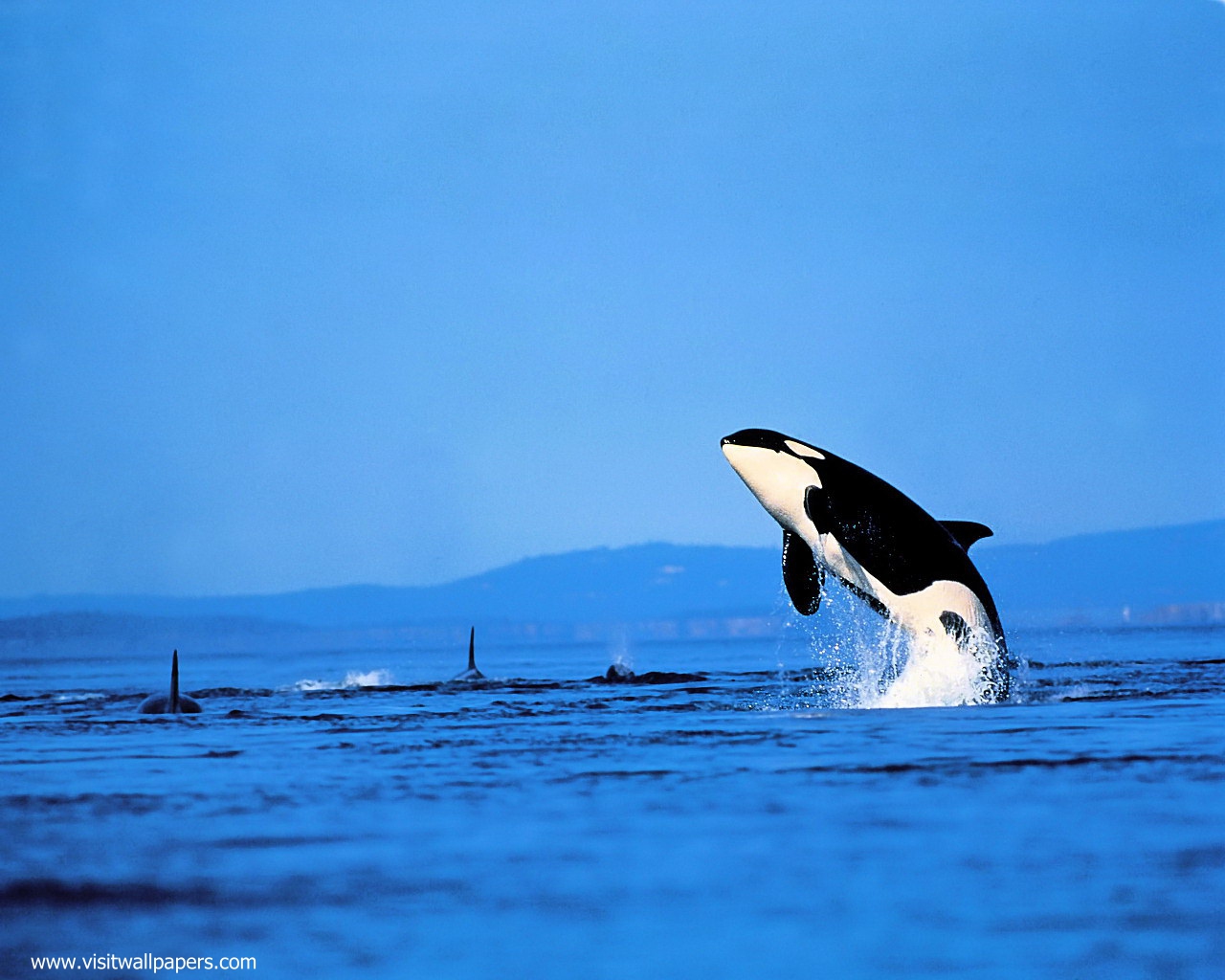 ocean-life-797Killer whale, known as Orca, jumping out of sunset ocean water with splashes, Norwegian fjord in the background