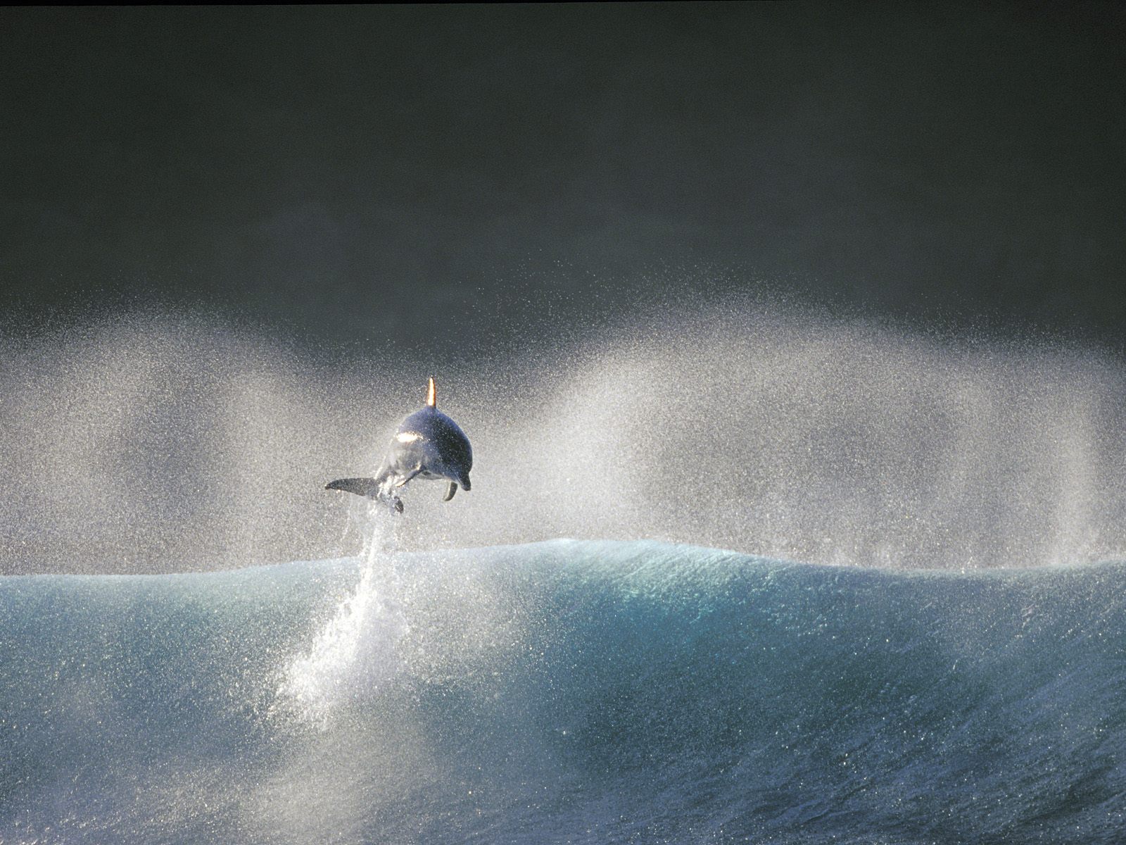 ocean-life-749Three beautiful dolphins jumping over breaking waves. Hawaii Pacific Ocean wildlife scenery. Marine animals in natural habitat.