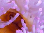 A Clown Anemonefish sheltering among the tentacles of its sea anemone.