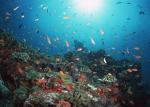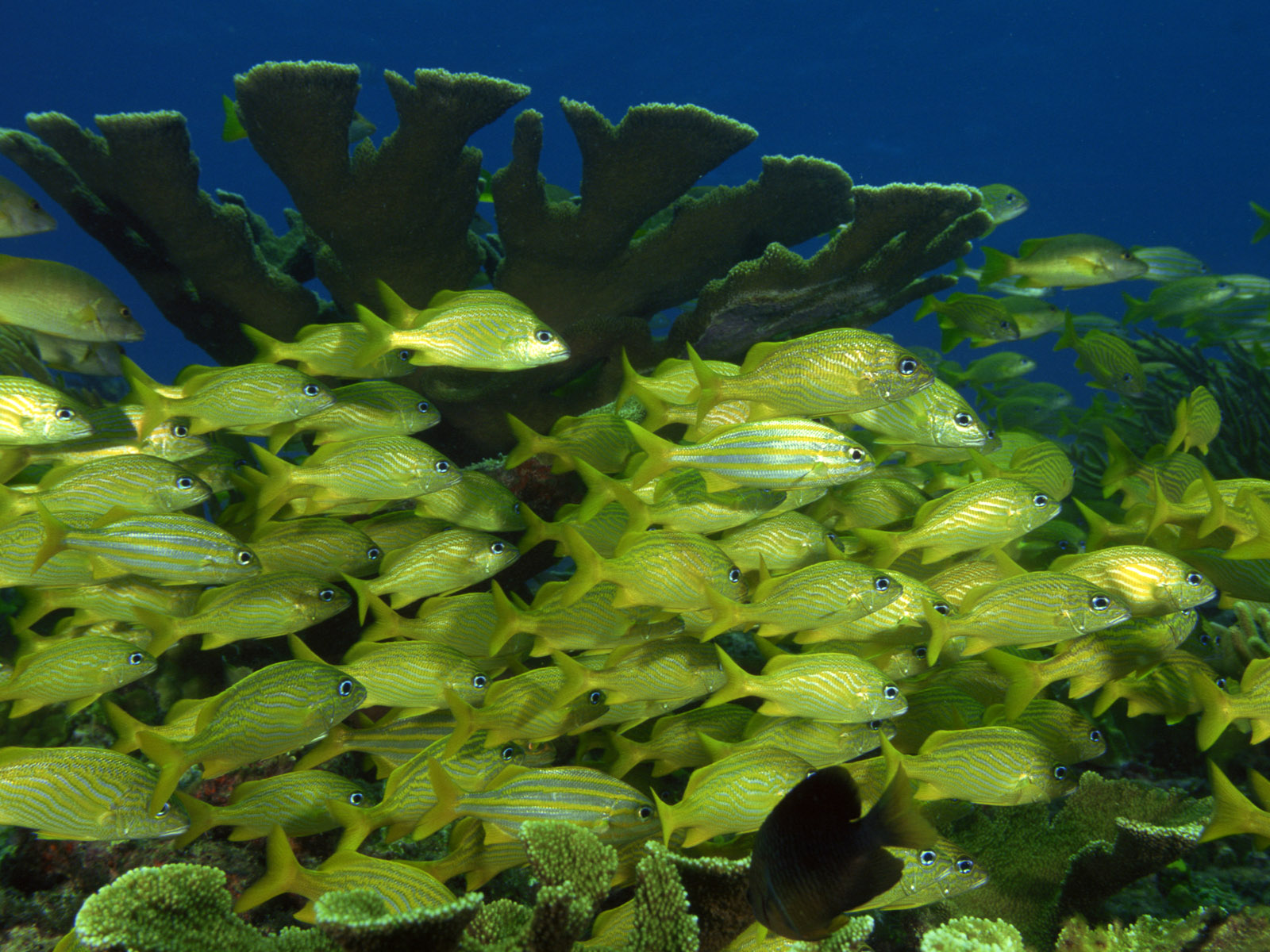 ocean-life-778Underwater coral reef scenery with colorful school of fish.