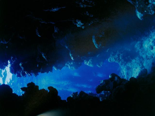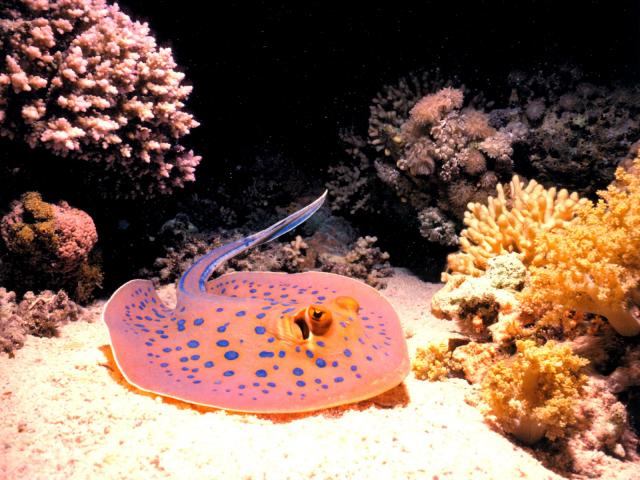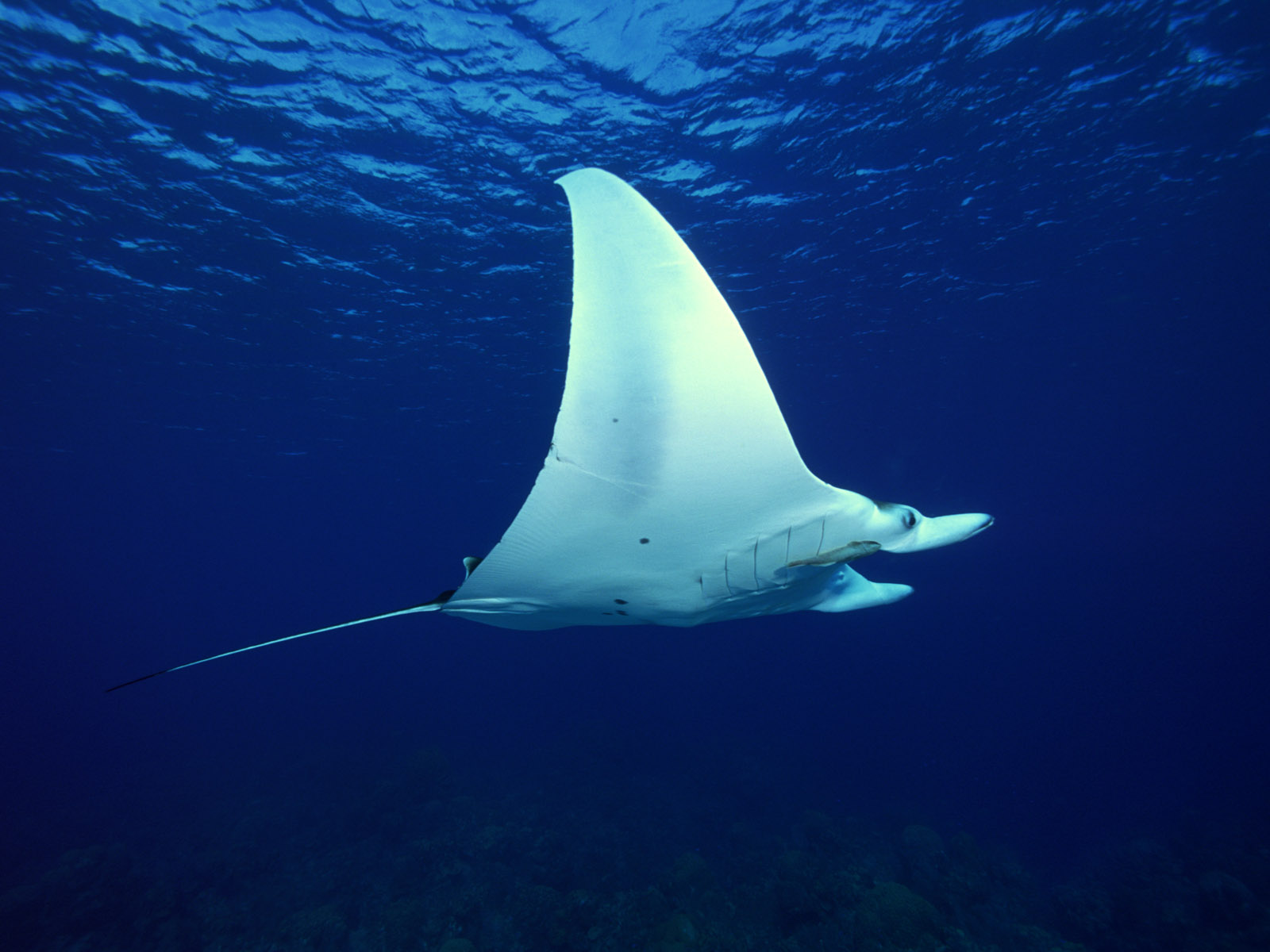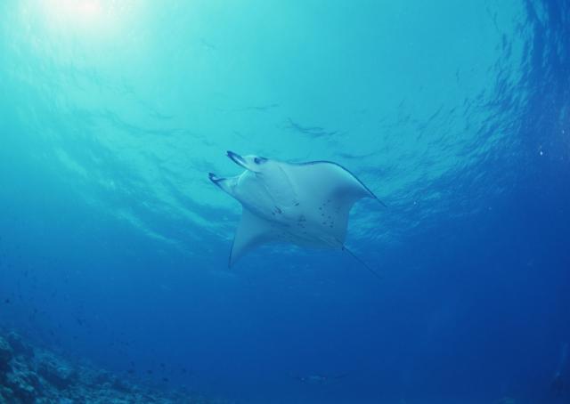 ocean-life-740Manta ray filter feeding above a coral reef in the blue Komodo waters