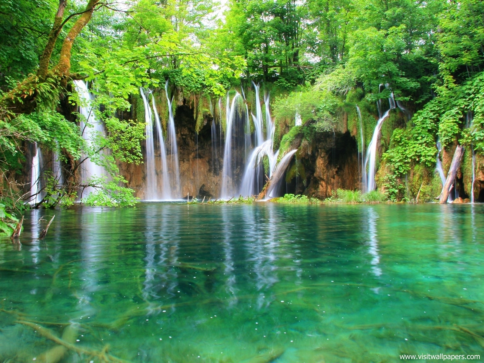 Nature_333Huge Deep forest stream with crystal clear water in the sunshine. Plitvice lakes, Croatia