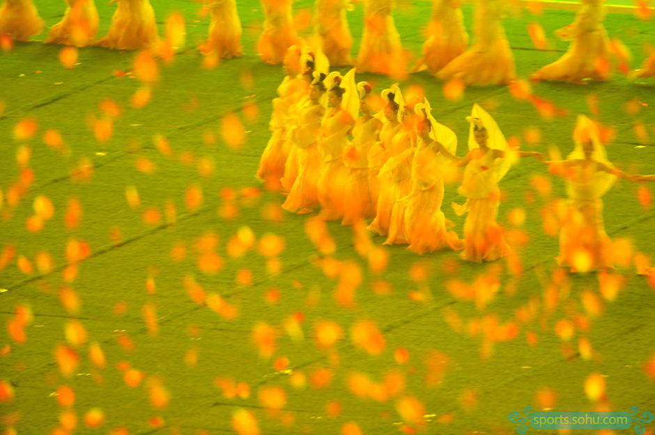 Dancers perform in the National Stadium, better known as the Bird's Nest, at the closing ceremony of the 2008 Beijing Paralympic Games in Beijing on September 17, 2008. China will bring down the curtain on a spectacular summer of sport during which it dazzled on and off the track, with the closing ceremony of the Paralympics.