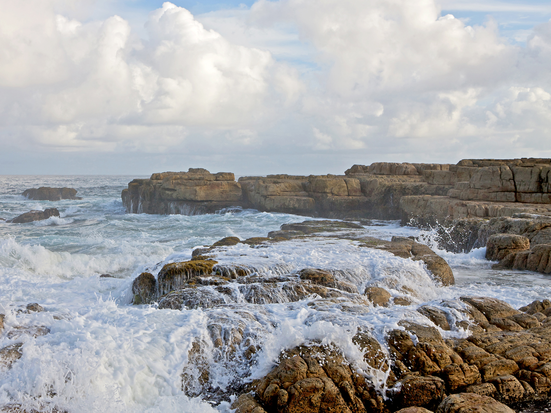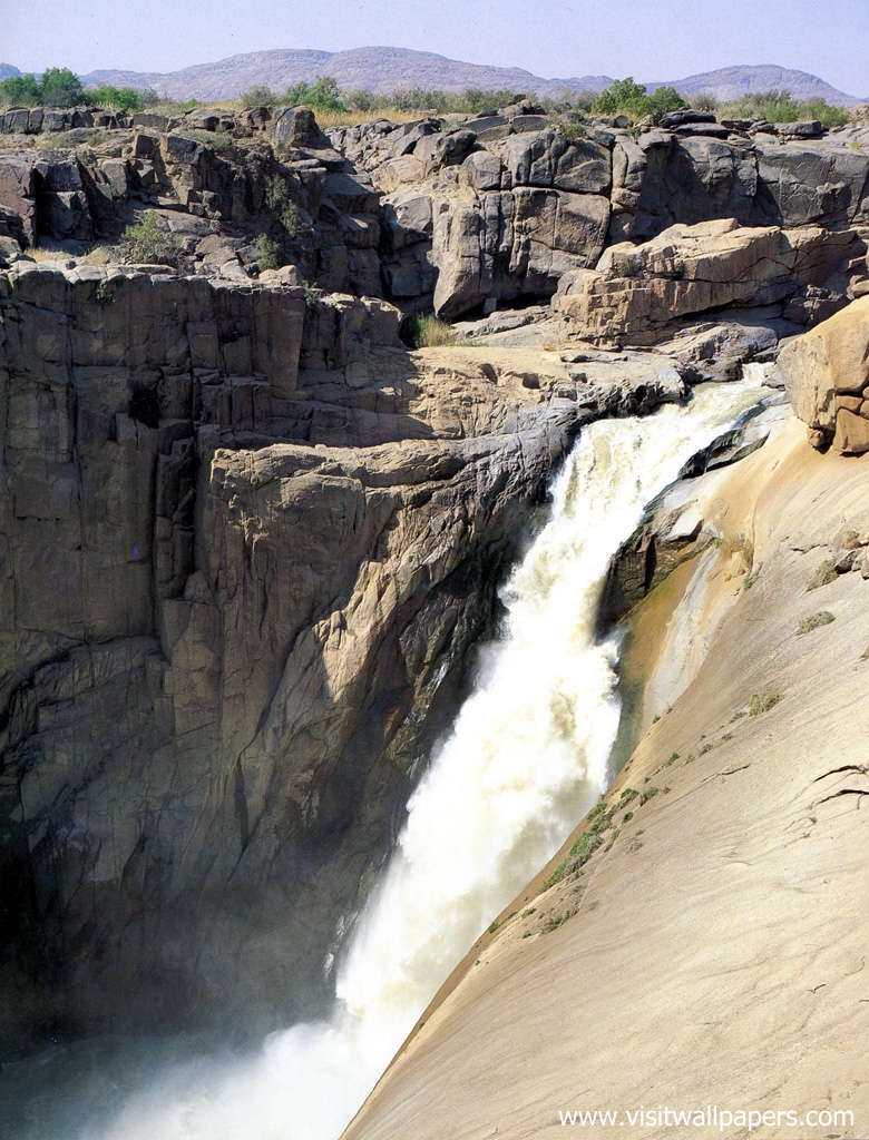 About 2.5 miles inland, the Mkambati river cascades over Horseshoe Falls.