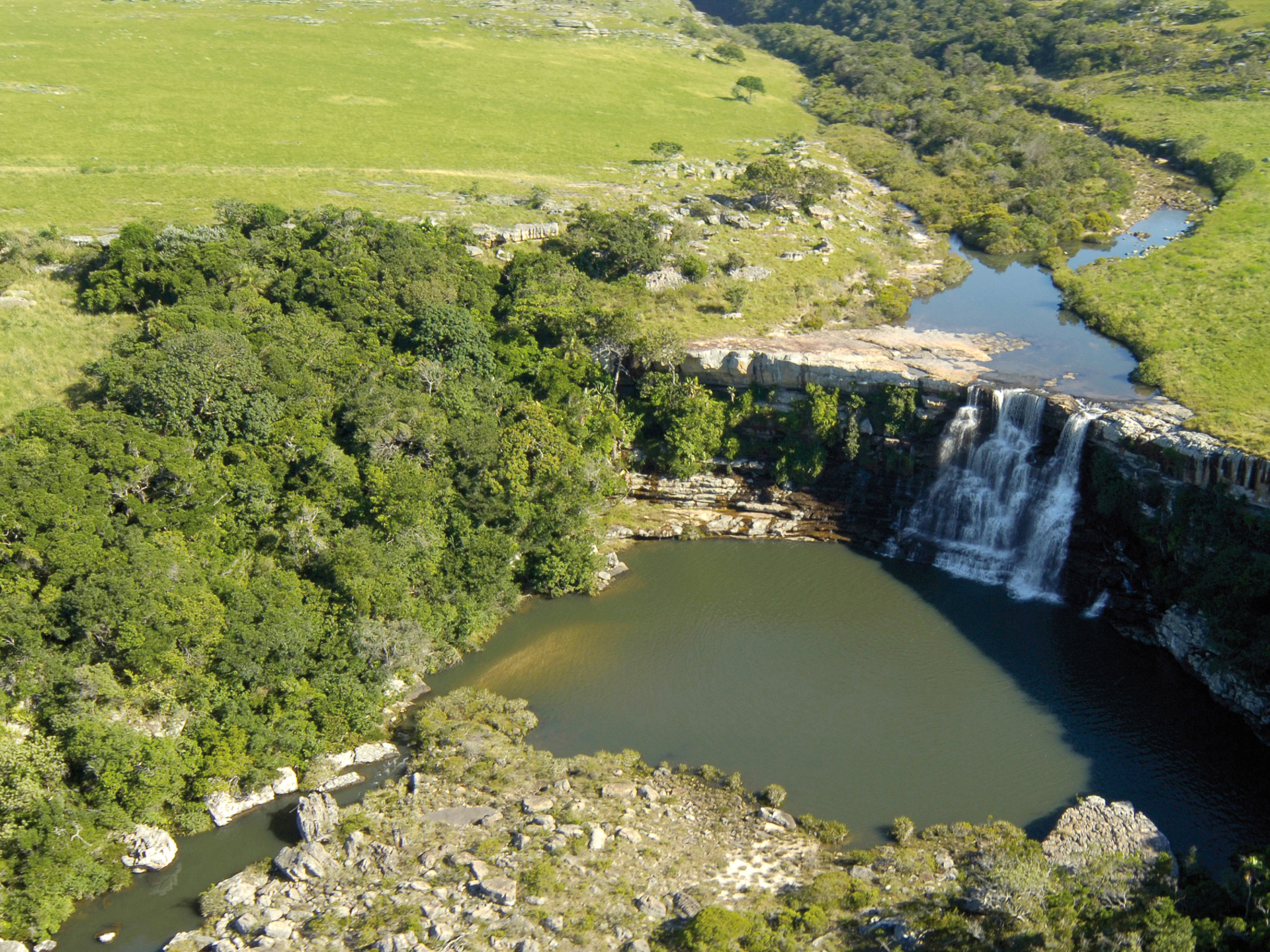 africa_110Aerial View of Mkambati Nature Reserve About 2.5 miles inland, the Mkambati river cascades over Horseshoe Falls. Mkambathi Nature Reserve is a protected area in Eastern Cape, South Africa. It is about 7.720 Ha large on the coast, open grassland dot