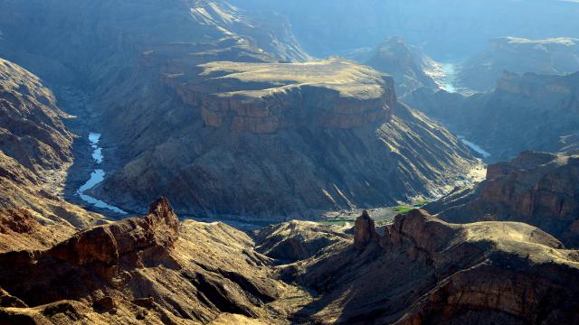 Namibia is the travel gift that keeps on giving. Some 500 meters (1,640 feet) deep and more than 160 kilometers (100 miles) long, this great rift is second only to the United States' Grand Canyon in size, and during the dry season is characterized by beautiful turquoise pools of seasonally flowing water stretching into the distance.