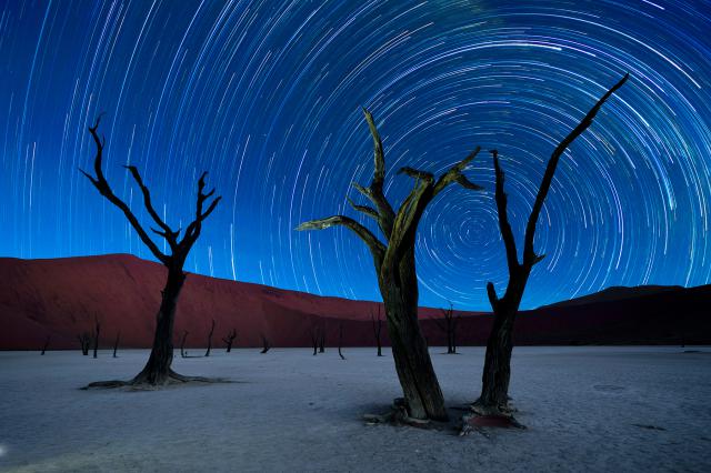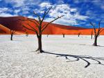 africa_127Dead Camelthorn Trees against red dunes and blue sky in Deadvlei, Sossusvlei. Namib-Naukluft National Park, Namibia, Africa