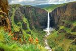 africa_168Maletsunyane Falls in Lesotho Africa. The most beautiful waterfalls in the world, beautiful green landscape of amazing waterfalls falling into the river within the valley, panoramic views of great waterfalls. Maletsunyane Falls is a 192-metre-high (