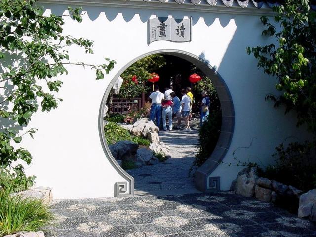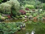 Japanese garden bright autumn colors. Lithia Park, Ashland, Oregon
