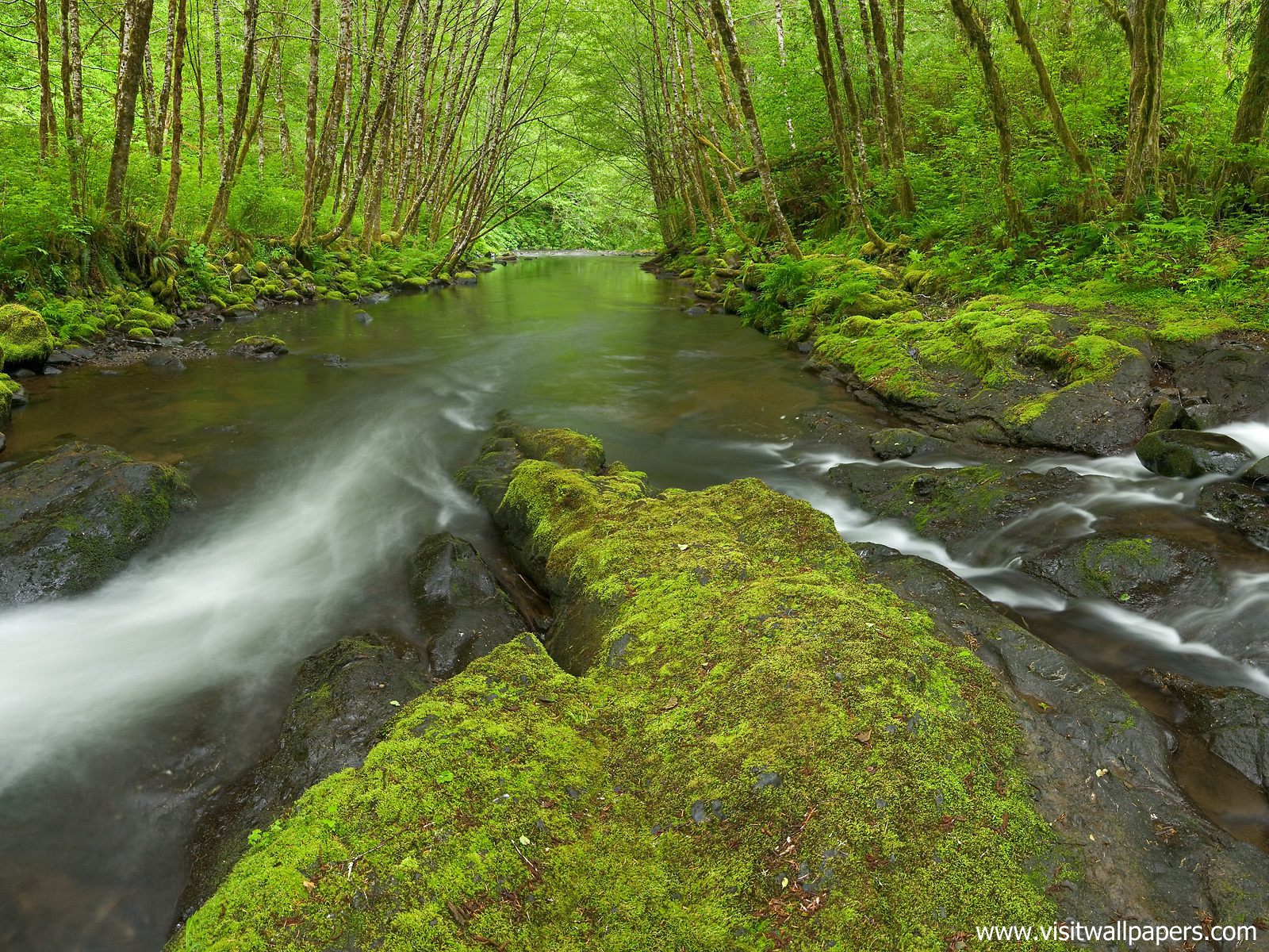river_213Sunshine in a forest - River, Creek, Stream Wallpaper