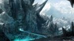 Fantasy_422A young orc warrior with a two-handed sword is flying on a huge shadow dragon with purple scales and crystals, darkness oozes from his body, behind an ice kingdom in rocks and snow. 3d rendering.