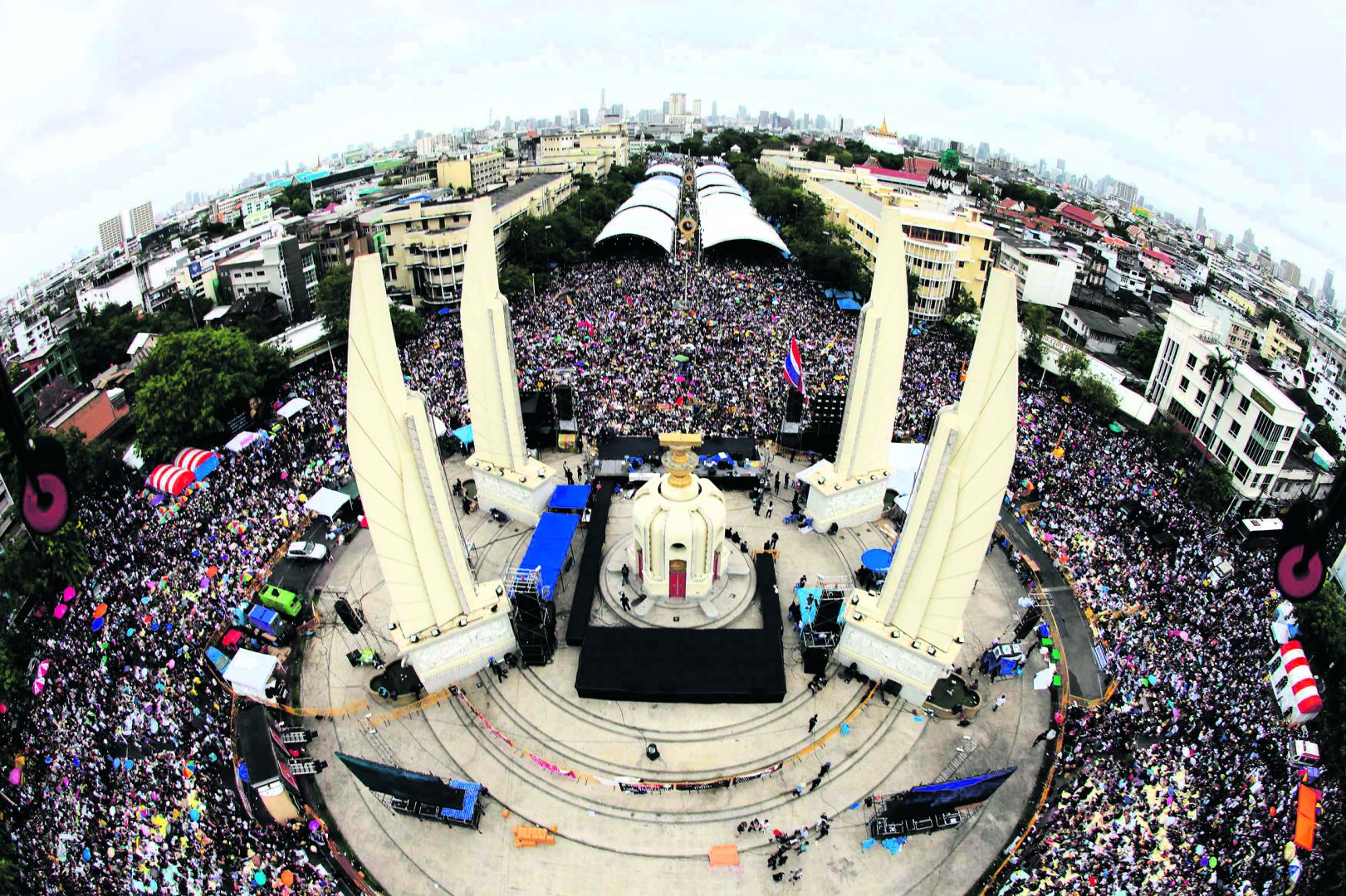 protests_063Anti-government protesters take part in a rally by the Democracy Monument in Bangkok, Thailand, on Aug 16, 2020. BANGKOK, Thailand - Thousands of Thai protesters chanting “down with dictatorship” and “the country belongs to the people” joined an an