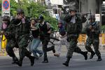 protests_041Thai soldiers march past the body of a Red Shirt protester during the early morning attack on the red shirt camp May 19, 2010 in Bangkok, Thailand. (Paula Bronstein/Getty Images)