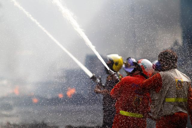 protests_027Firemen douse a fire at a barricade of Lumpini Park put up by anti-government protesters in downtown Bangkok, Thailand, Wednesday, May 19, 2010. (AP Photo/ Manish Swarup)