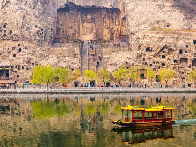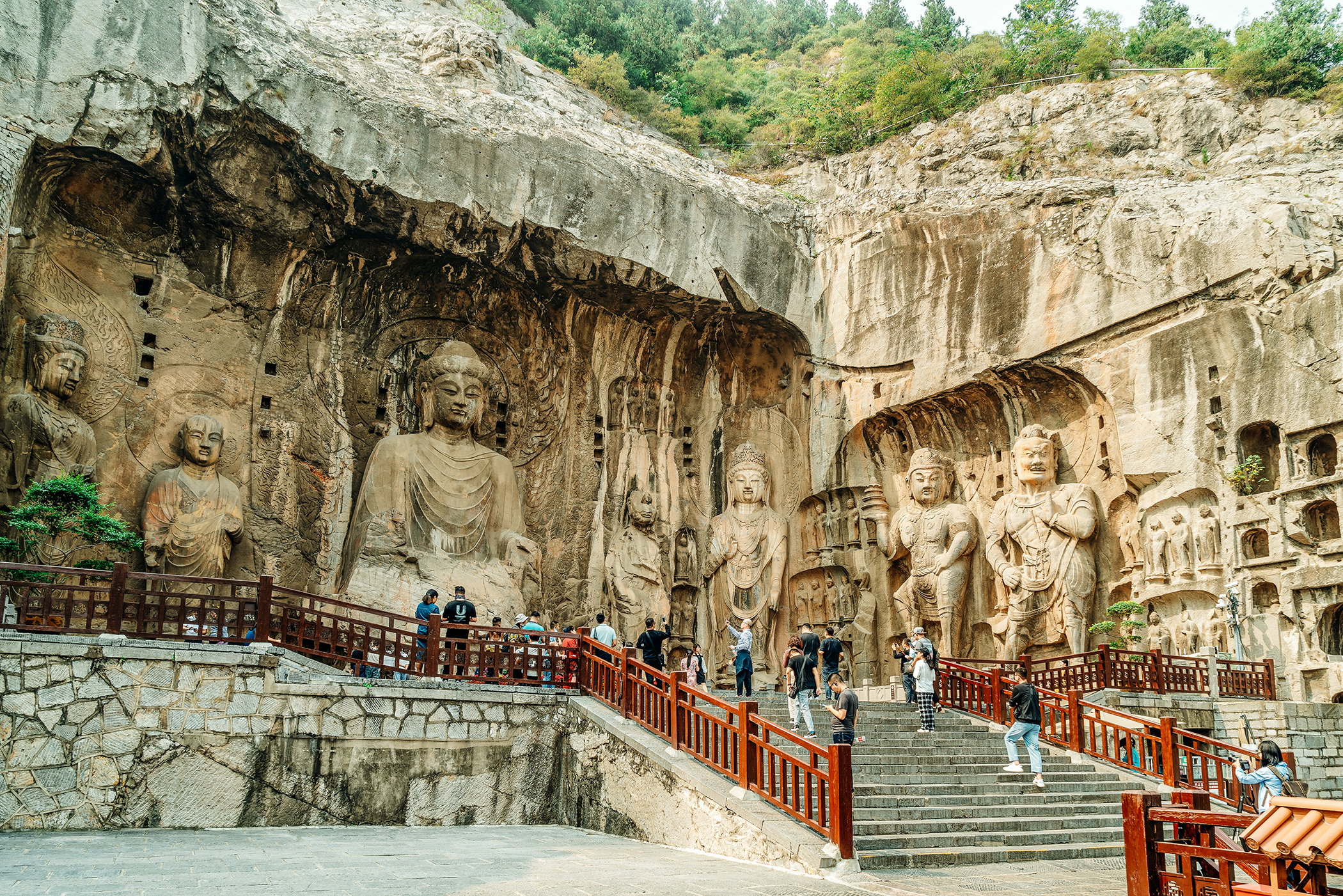 Luoyang, CHINA - SEPTEMBER 24,2020: Longmen Grottoes with Buddha's figures are Starting with the Northern Wei Dynasty in 493 AD. It is one of the four notable grottoes in China.