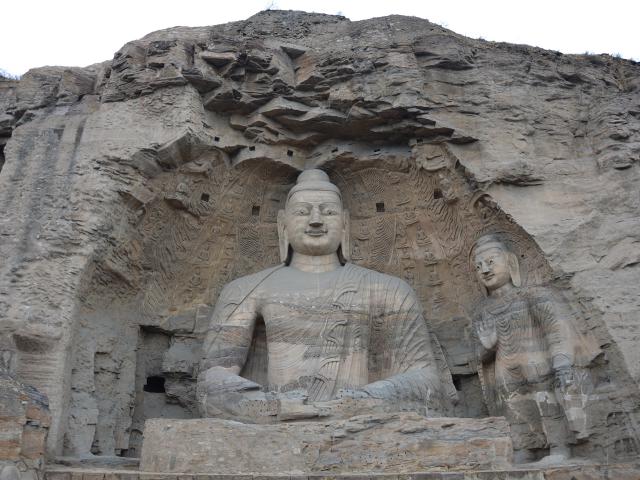 The Yungang Grottoes (Chinese: 云冈石窟; pinyin: Yúngāng shíkū), formerly the Wuzhoushan Grottoes (Chinese: 武州山 / 武周山; pinyin: Wǔzhōushān), are ancient Chinese Buddhist temple grottoes near the city of Datong, then called Pingcheng, in the province of Shanxi. They are excellent examples of rock-cut architecture and one of the three most famous ancient Buddhist sculptural sites of China. The others are Longmen and Mogao.