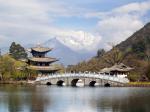 china_977Crossing the bridge where is way to blue moon valley of Lijiang, Jade dragon snow mountain. Yunnan province, China