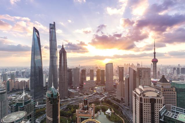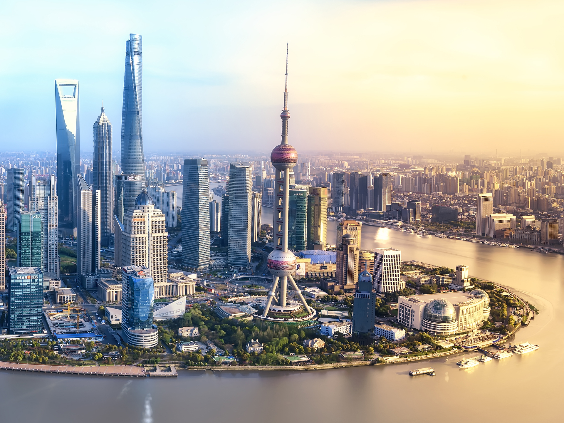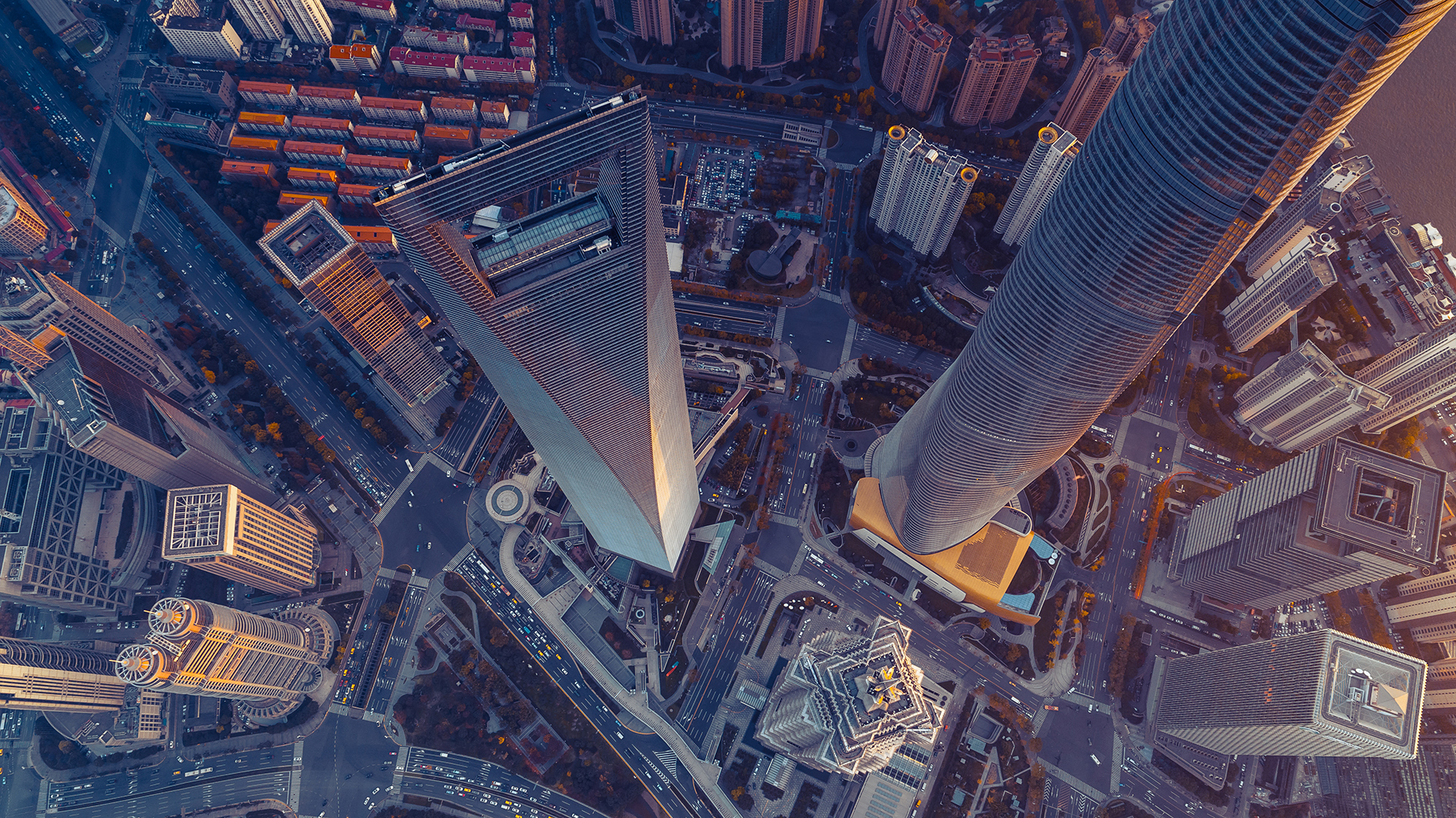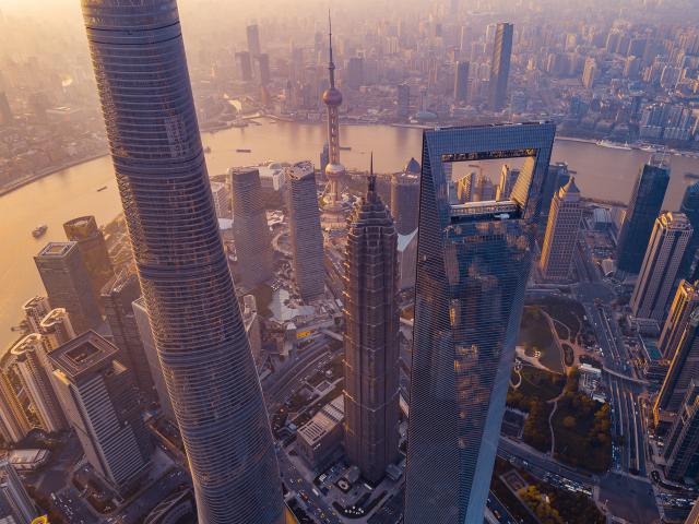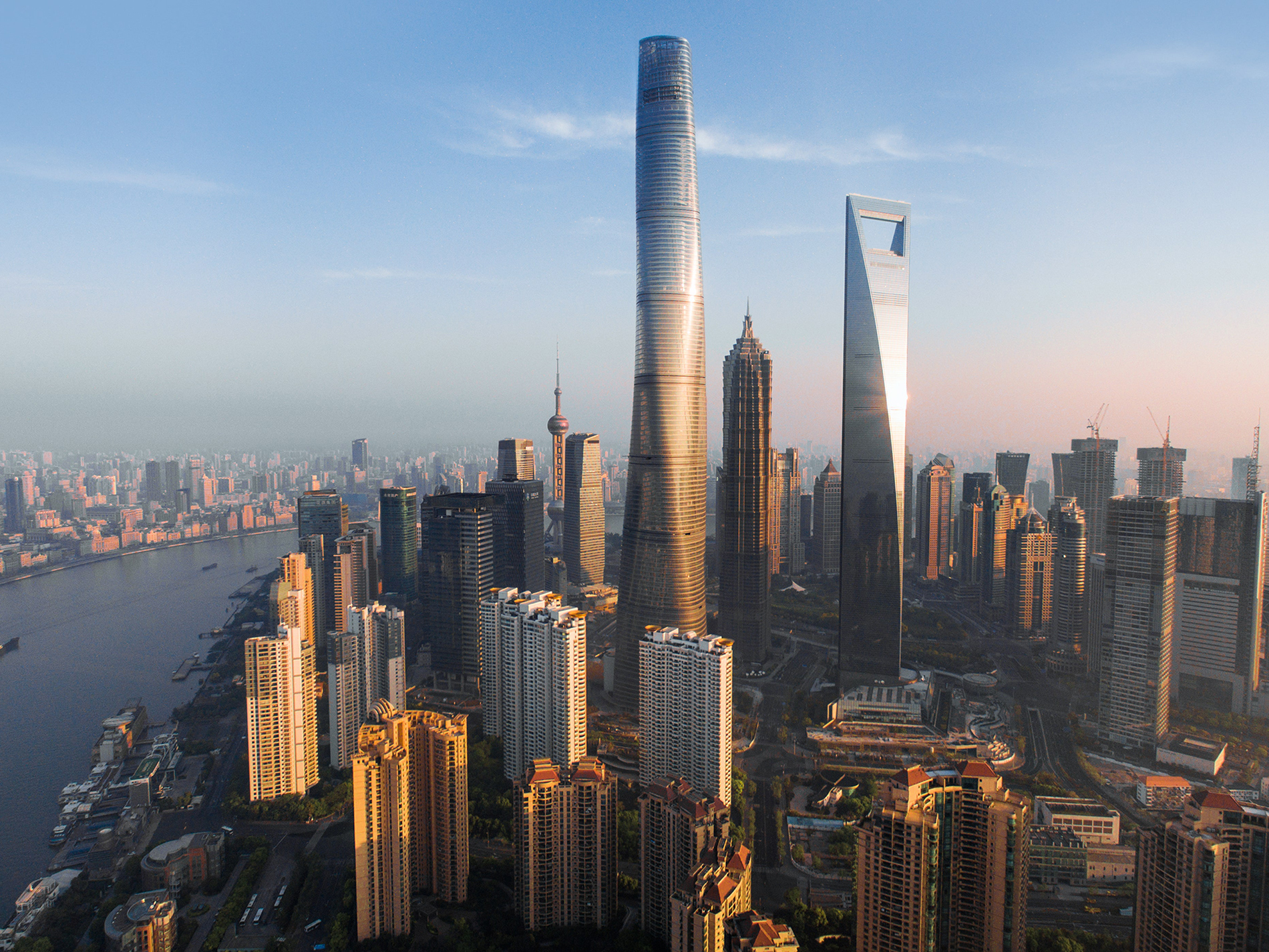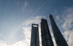 china_805Shanghai Skylines, Shanghai, China. Aerial view of Jin Mao Tower, Shanghai tower, Shanghai World Financial Center and Oriental Pearl Tower