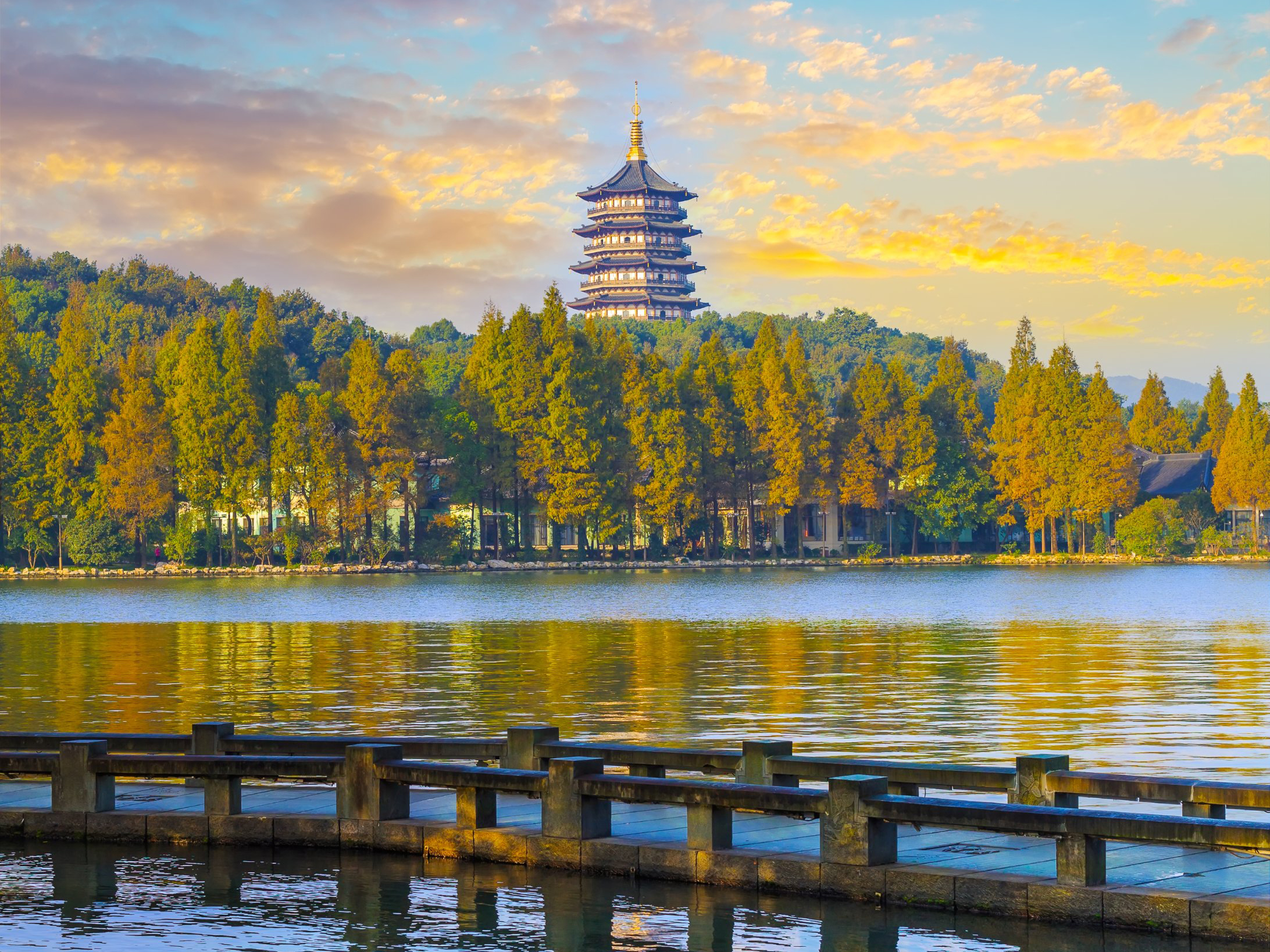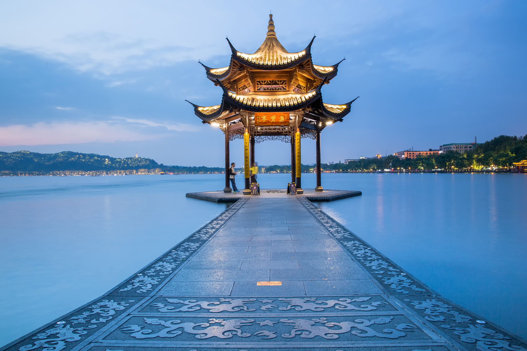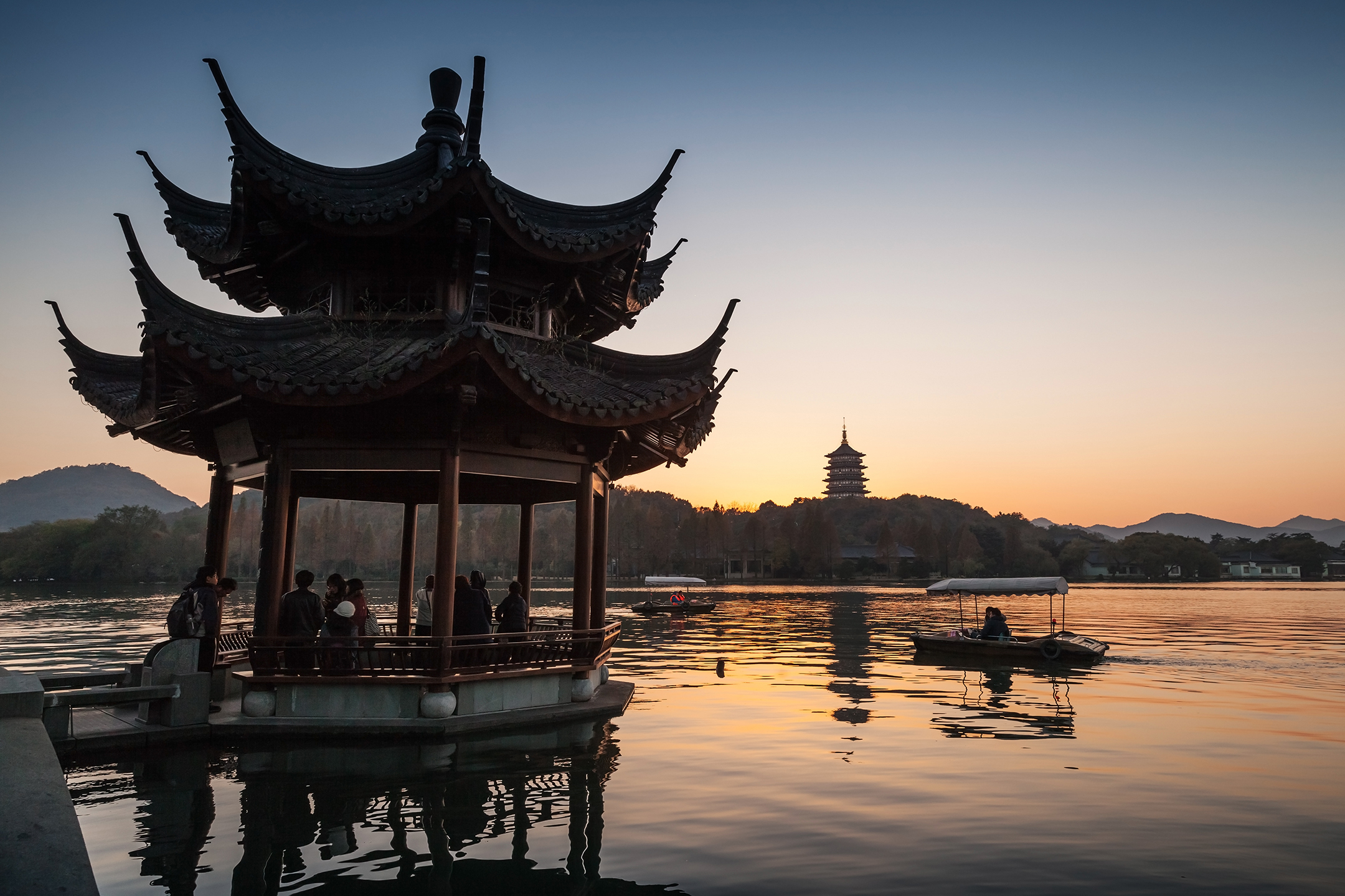 china_895Jixian Pavilion at dusk, West Lake, Hangzhou, China