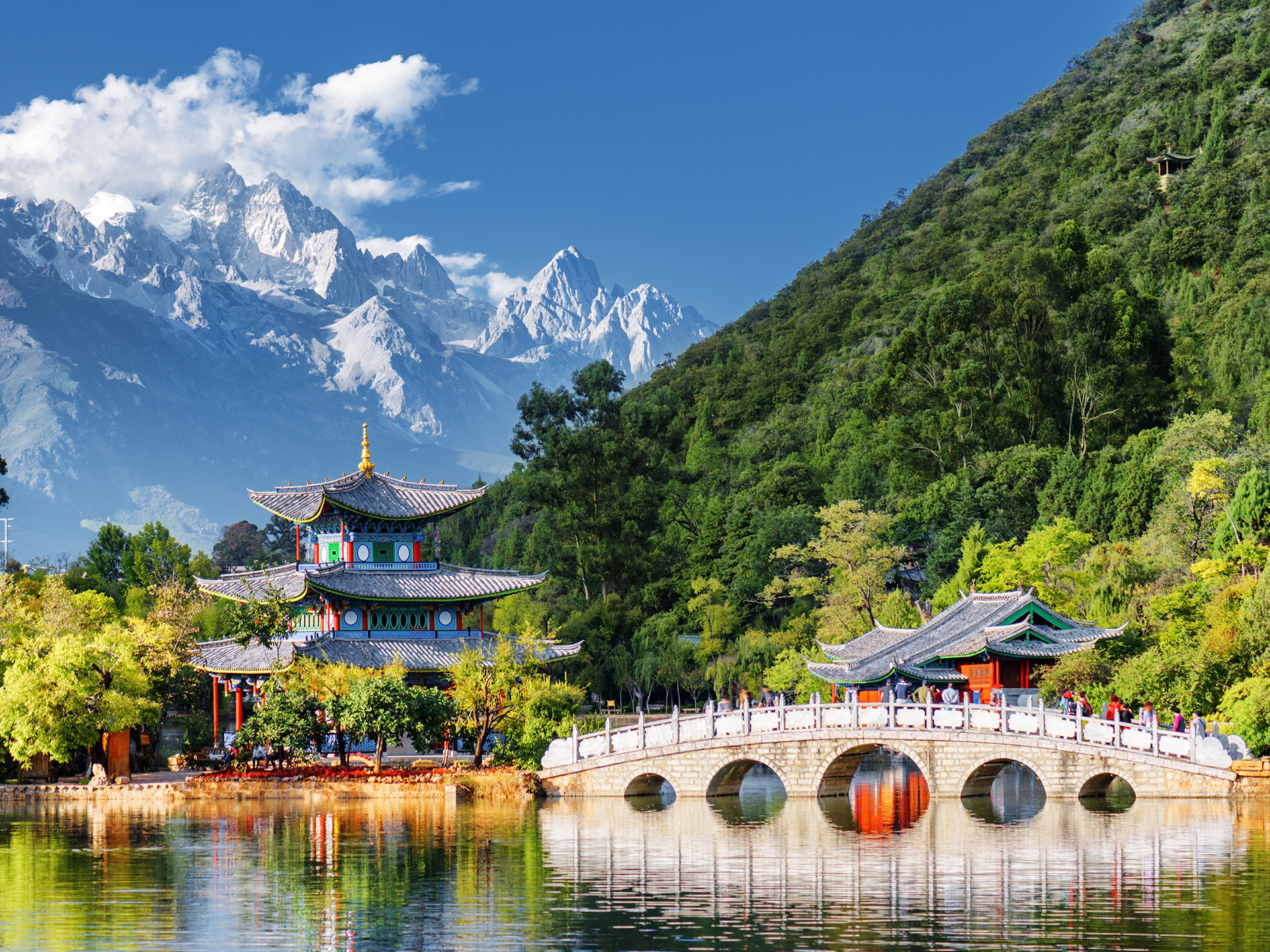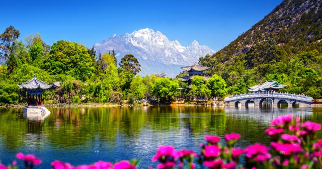 Black Dragon Pool. It's a famous pond in the scenic Jade Spring Park (Yu Quan Park) located at the foot of Elephant Hill, a short walk north of the Old Town of Lijiang in Yunnan province, China.