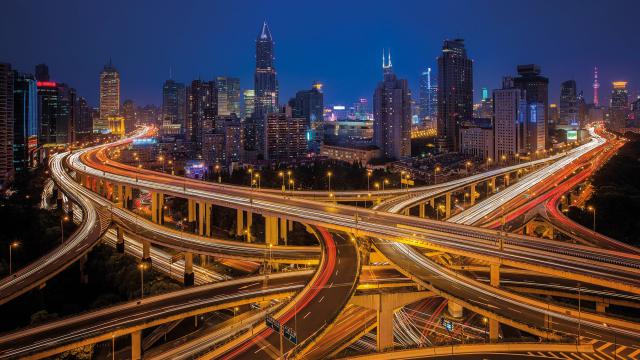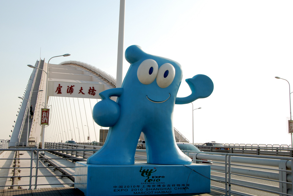 The Nanpu Bridge in Shanghai, China, sister bridge to the Yangpu Bridge, is one of the main bridges in Shanghai.