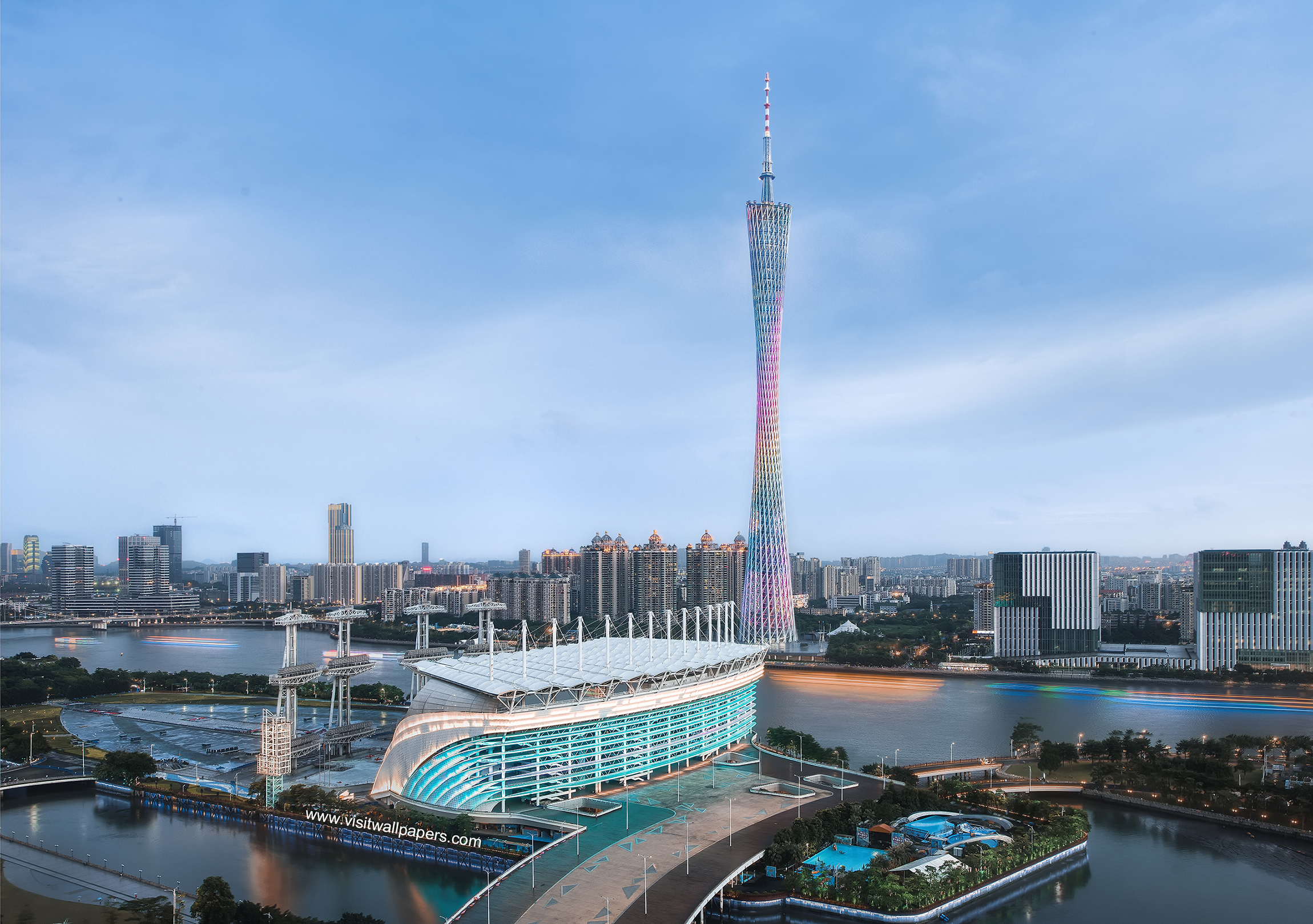 china_981This is an evening view of the Canton Tower buildings, a famous skyscraper in the downtown area on October 21, 2018 in GUANGZHOU, CHINA