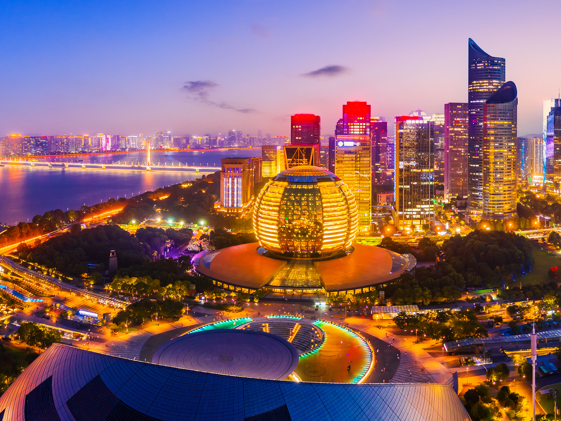 Iconic architecture in the district includes the golden-egg-structured International Conference Center, moon-shaped Hangzhou Grand Theatre, and the City Balcony and Raffles City shopping mall. Hangzhou municipal government moved from city center to Qianjiang New City in 2016.
