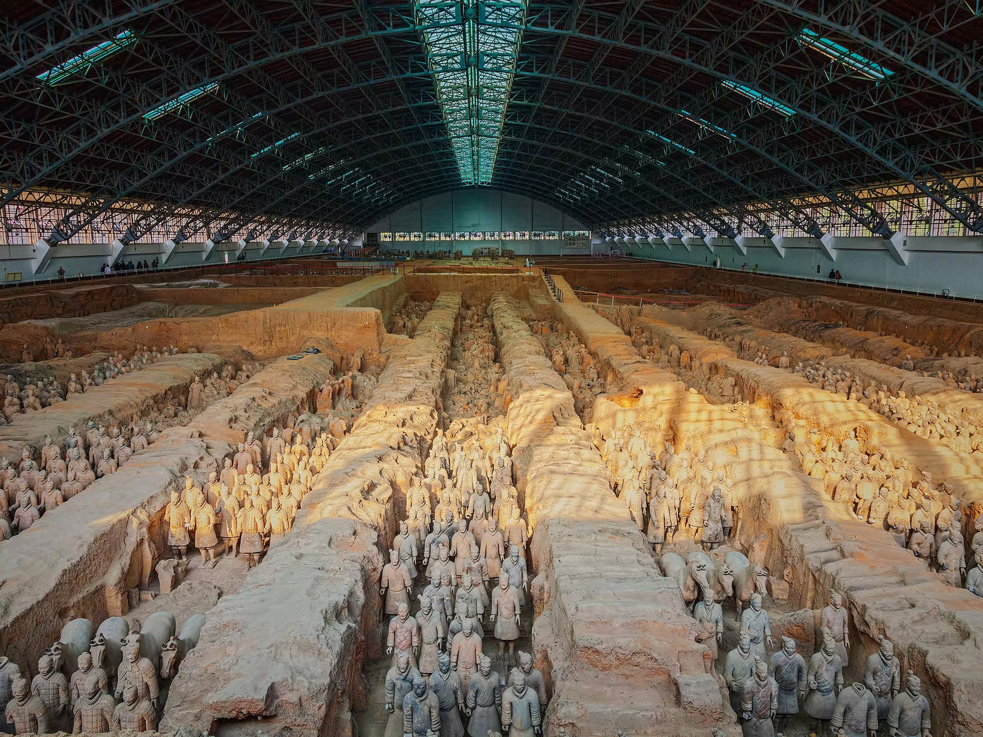 The Terracotta Army, created 2,200 years ago to protect emperor Qin Shi Huang in the afterlife, is the only known collection of military sculptures produced en masse in the world. As the country’s first emperor, Qin Shi Huang unified China. He is believed to have had an army of more than 500,000 men.