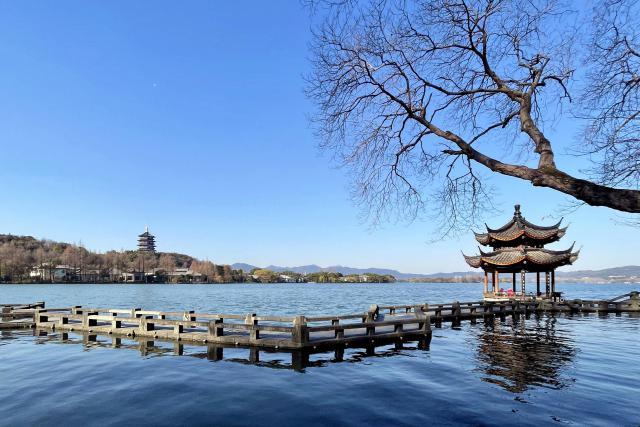 Beautiful architectural landscape and landscape in West Lake, Hangzhou, China