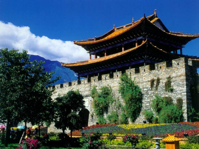 china_940The Three Pagodas of the Chongsheng Temple (Chinese: 崇圣寺三塔; pinyin: Chóngshèng Sì Sāntǎ) are an ensemble of three independent pagodas arranged on the corners of an equilateral triangle, near the old town of Dali, Yunnan province, China, dating from the ti