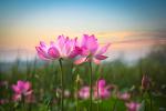 beautiful lotus flower in blooming at sunset
