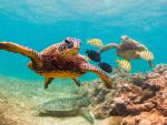 ocean-life-787Endangered hawaii Green sea turtles sail in the warm waters of the Pacific Ocean in Hawaii.