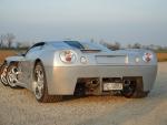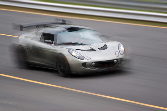 Cars_329A fast silver sports car speeding down the road. Slight motion blur.