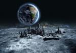 sci-fi_153Abstract photo art with astronaut on the Moon surface against Earth on the background, Exploring space and other planets.