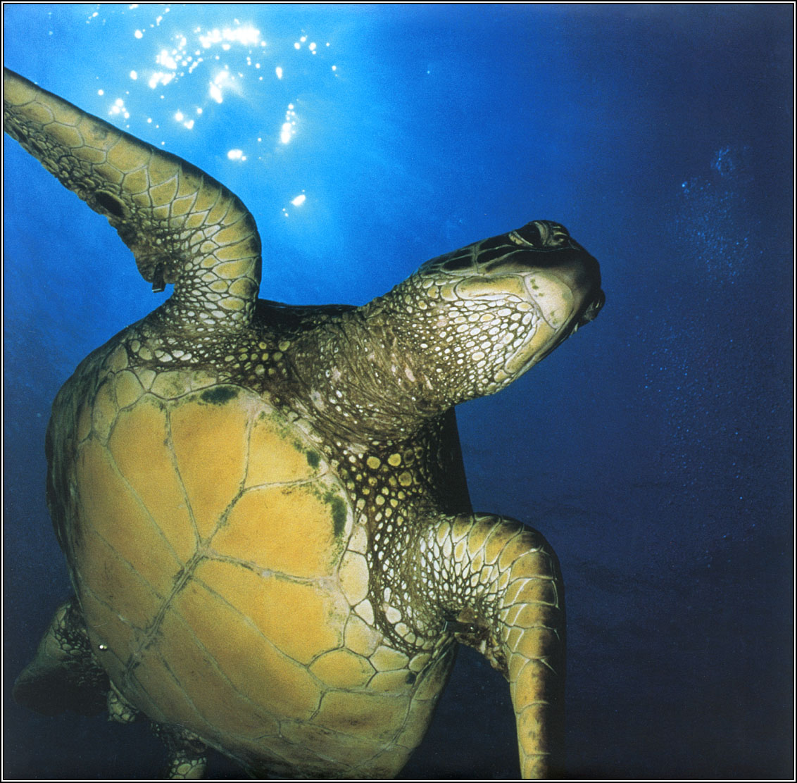ocean-life-748An endangered Hawaiian Green Sea Turtle cruises in the warm waters of the Pacific Ocean in Hawaii.