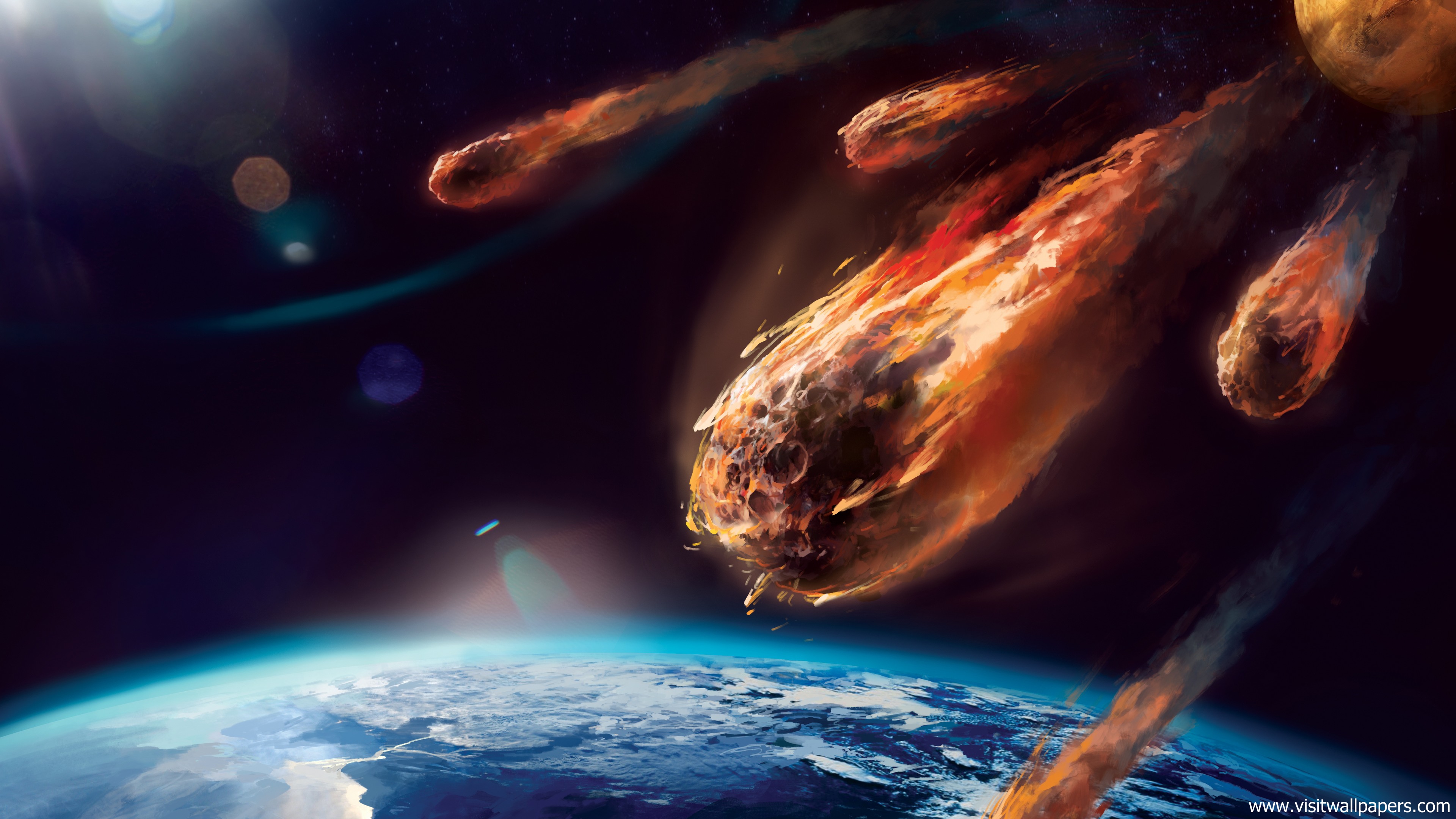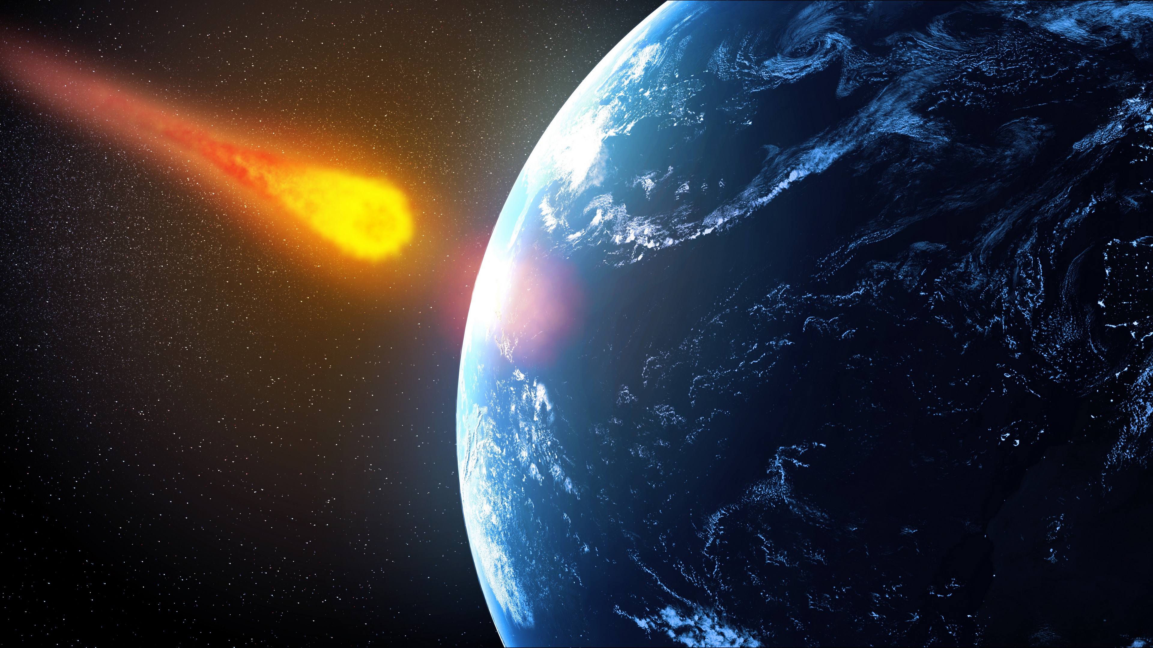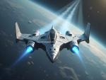 sci-fi_164A sleek, silver, aerodynamic spaceship with a mirror-like metallic sheen and angular, futuristic design flies directly towards Earth, its glowing blue engines pulsating with an otherworldly energy, leaving a trail of ionized air.