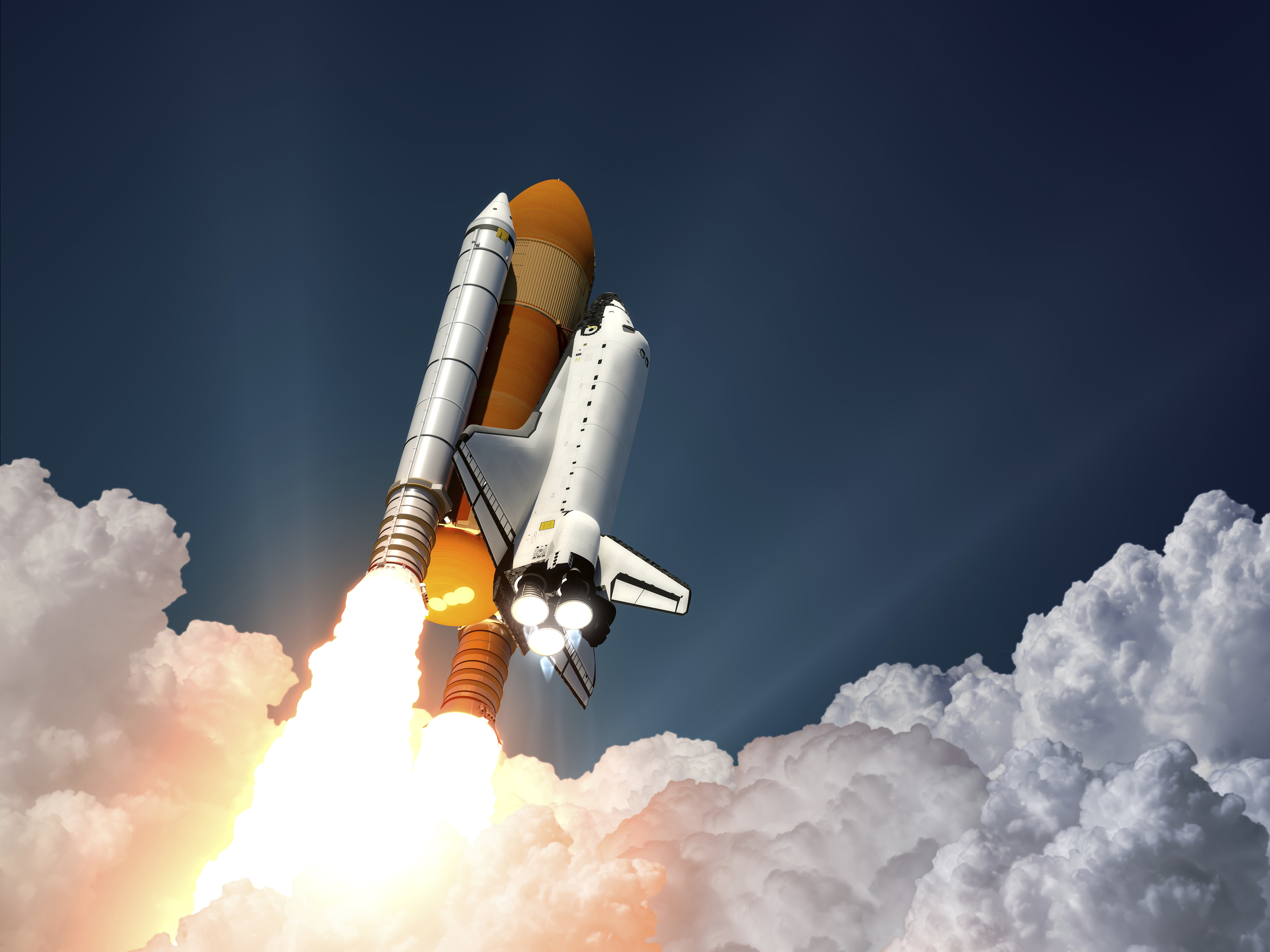 sci-fi_127Space shuttle taking off on a mission. Spaceship flying in the sky