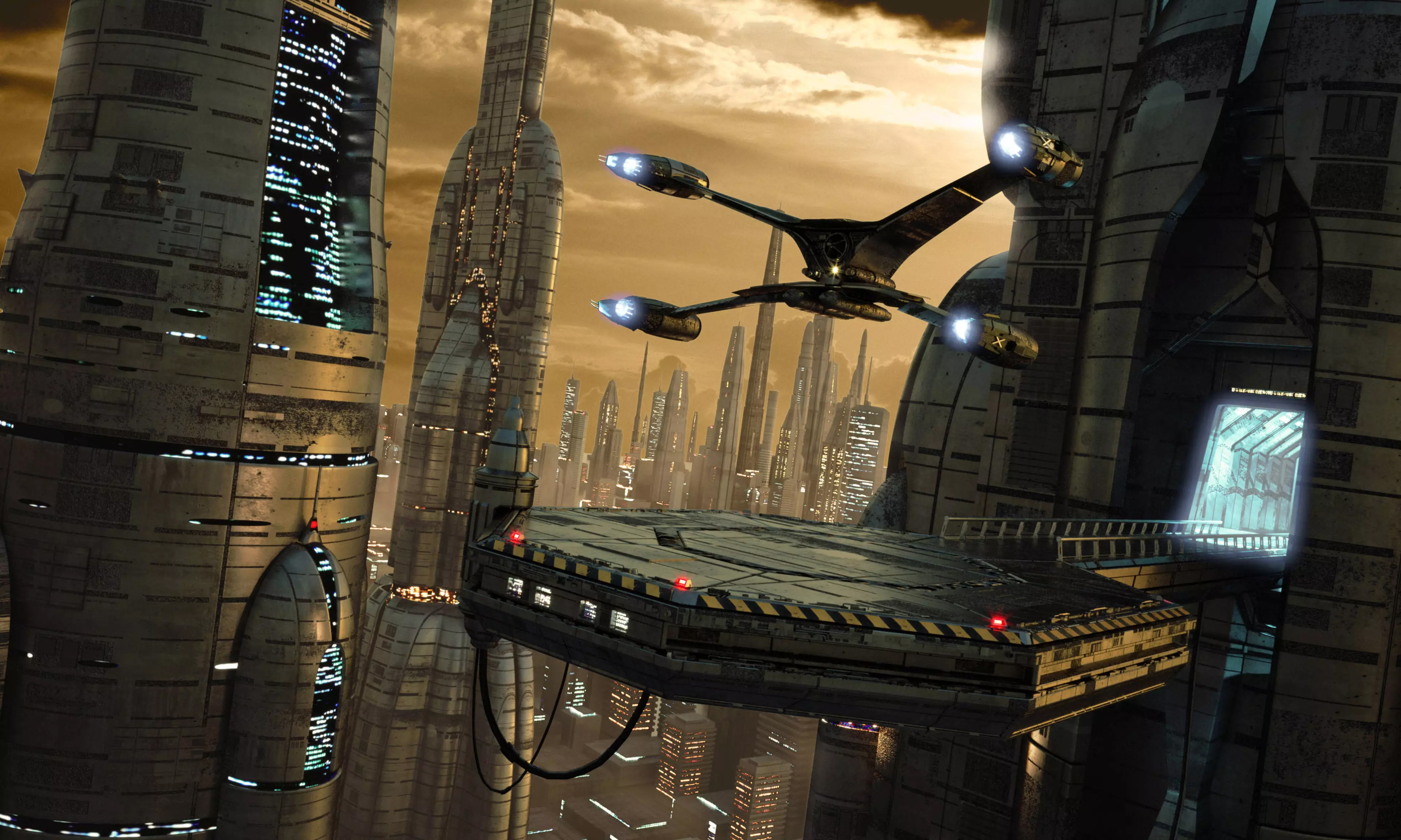 sci-fi_138Science-fiction city scene with starfighter touching down (3D render)